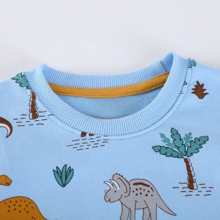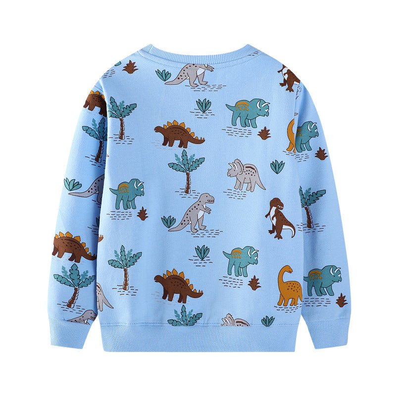 Make playtime extra fun with this adorable blue sweatshirt featuring cute cartoon dinosaurs. Designed for toddlers and kids, it combines cozy warmth with lively, playful prints that spark imagination. Perfect for everyday adventures or cozy days at home, this sweatshirt brings smiles and comfort wherever your little one goes.