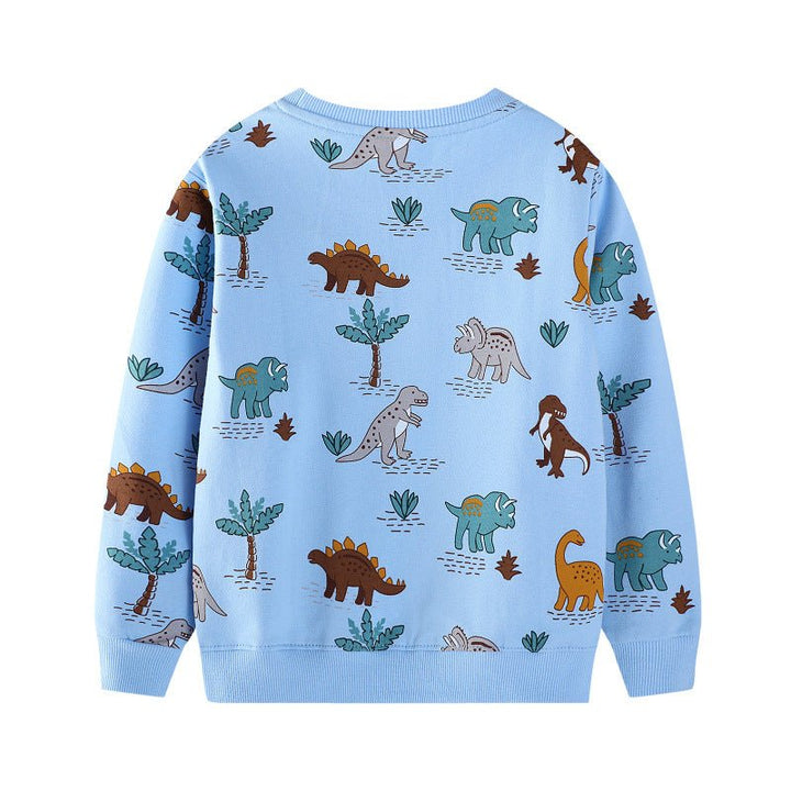 Toddler/Kid's Cute Cartoon Dinosaurs Print Design Blue Sweatshirt