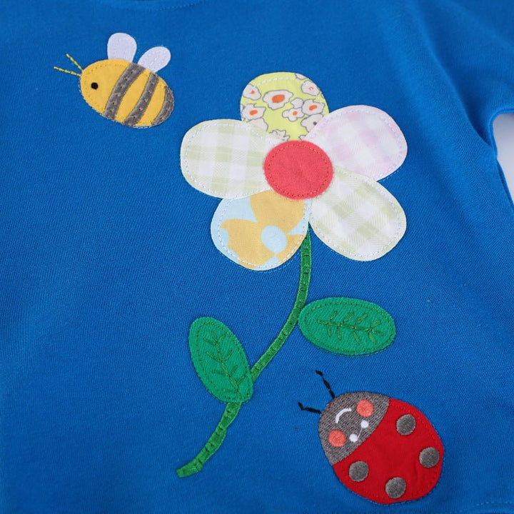 Toddler/Kid's Flower and Bee Embroidery Design Blue Sweatshirt