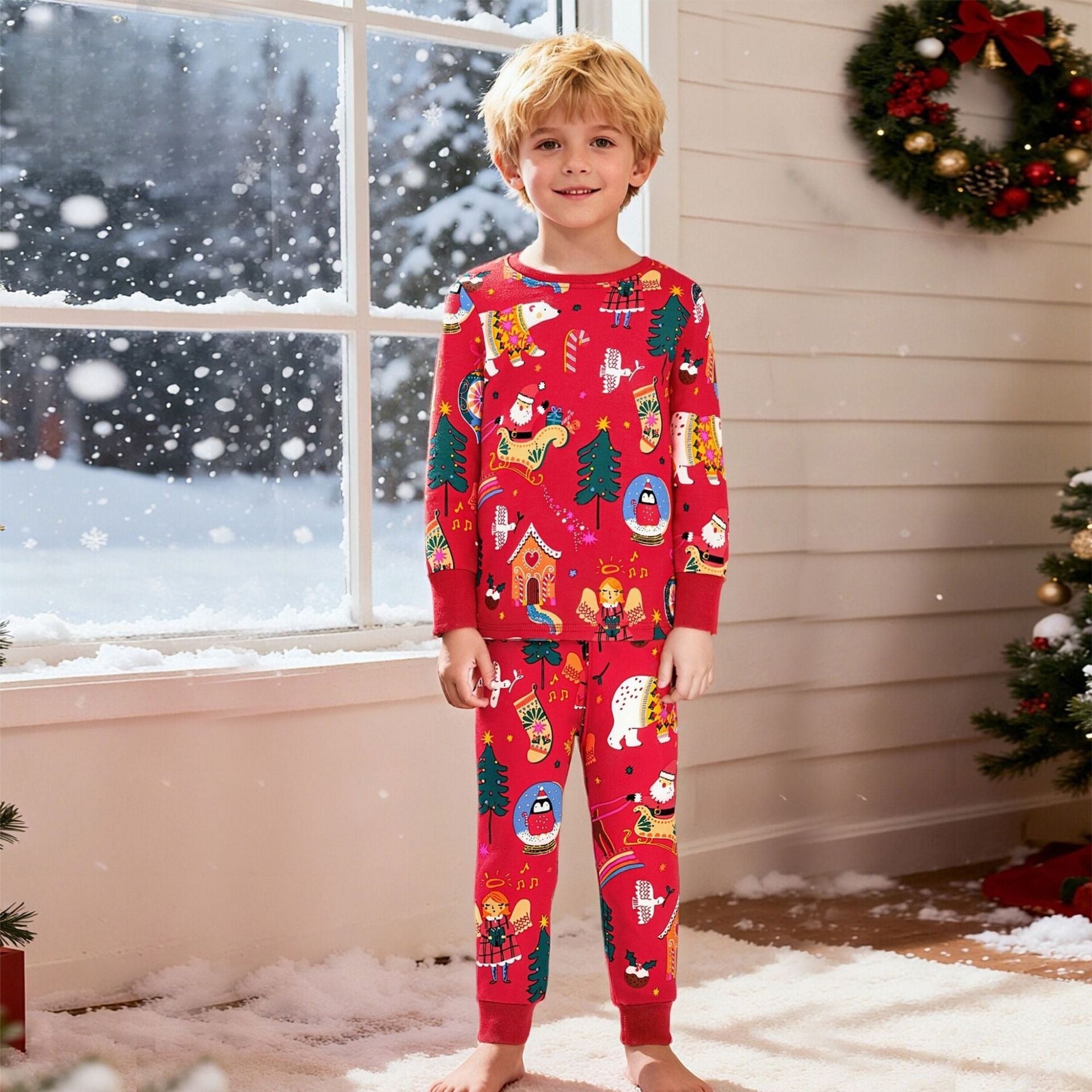 Cozy up for the holidays in this adorable pajama set featuring festive Santa and playful polar bear prints! Perfect for little ones who love Christmas magic, this soft and comfortable set keeps kids warm through chilly winter nights. The fun designs spark joy and imagination, making bedtime an exciting adventure. Ideal for holiday photos, family gatherings, or simply spreading seasonal cheer. Give your child the gift of comfort wrapped in holiday spirit!
