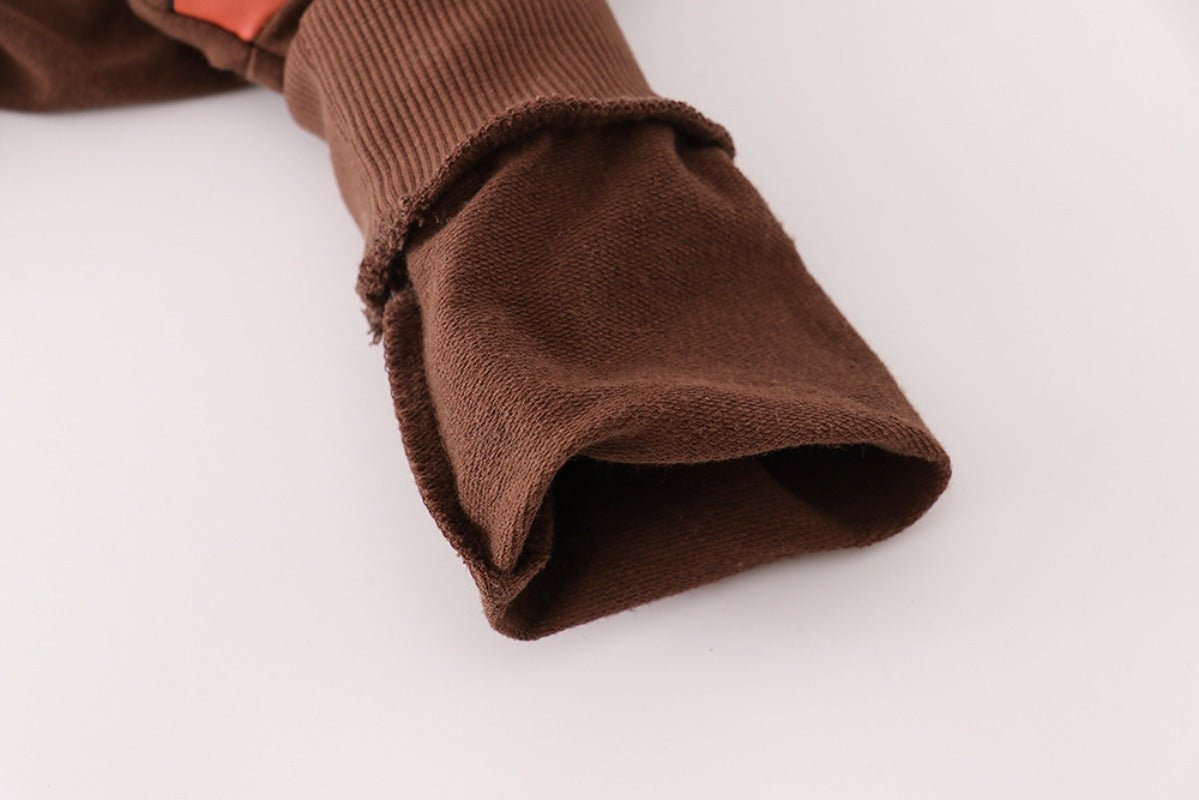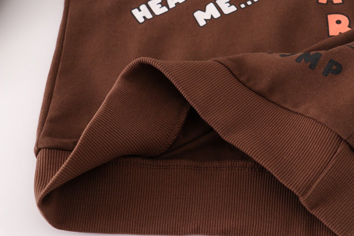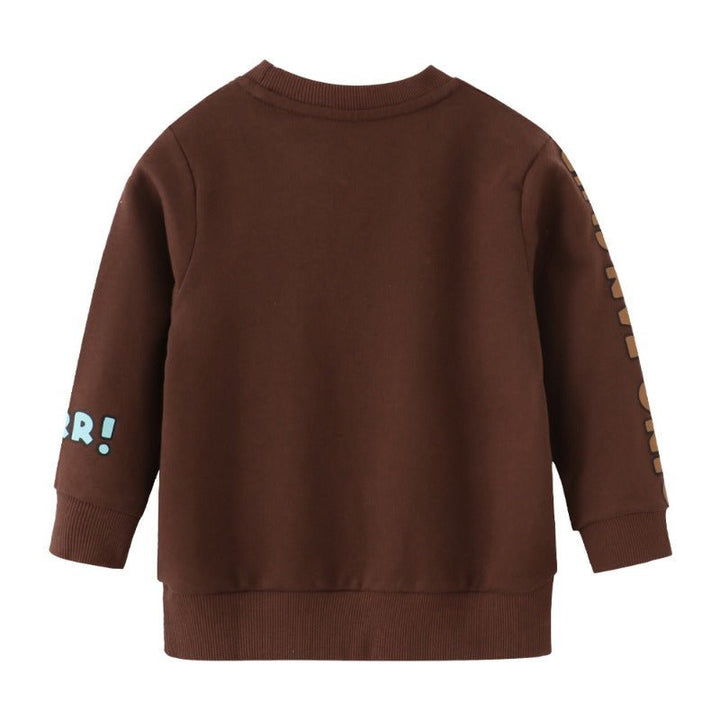 Roar into comfort with this adorable brown sweatshirt featuring three cheerful cartoon dinosaurs! Perfect for little dino lovers, this cozy piece combines soft fabric with a fun, eye-catching print that brings prehistoric playfulness to everyday wear. Whether stomping around the playground or snuggling up at home, your child will love showing off these friendly dinosaur buddies. Durable and easy to care for, it's the ideal addition to any kid's wardrobe.